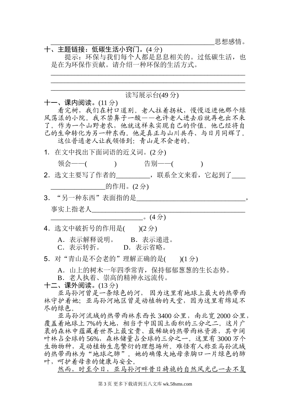2022年六年级上册第六单元 达标检测卷(二).doc_第3页