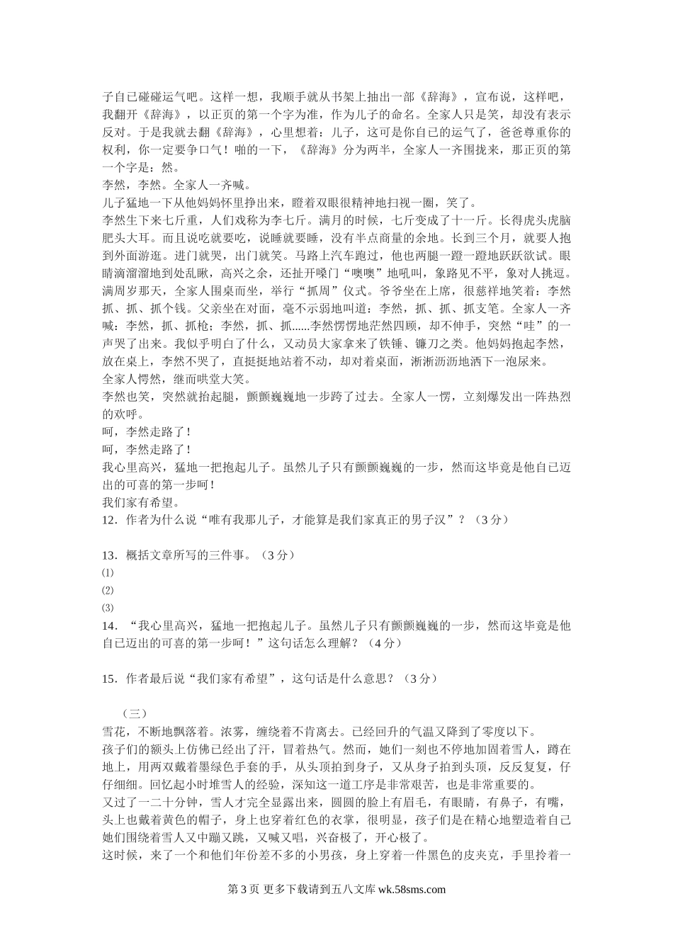 七年级语文第1课一起长大的玩具同步练习1鄂教版.doc_第3页