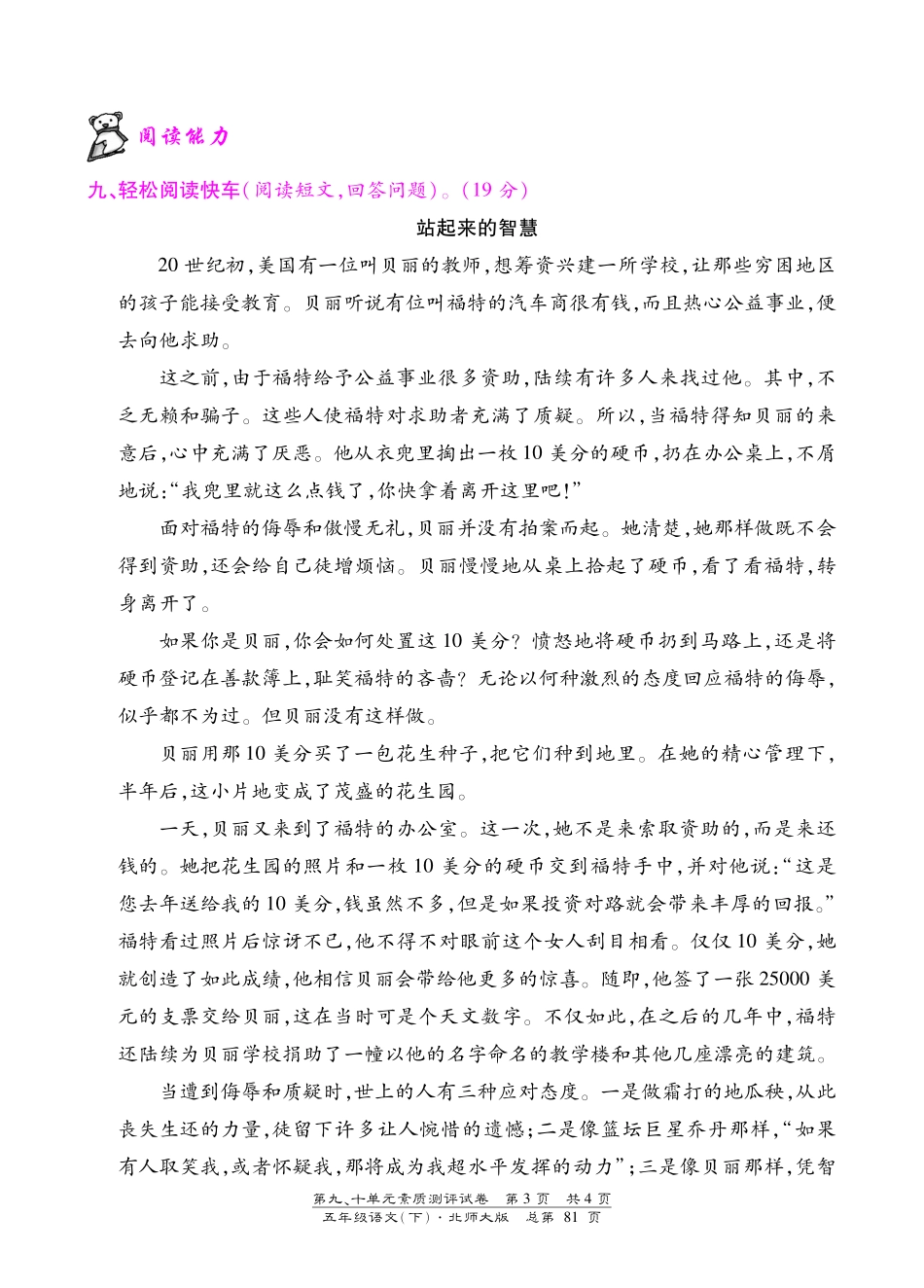 北师大版五年级语文下册第九~十单元测试卷含答案.pdf_第3页
