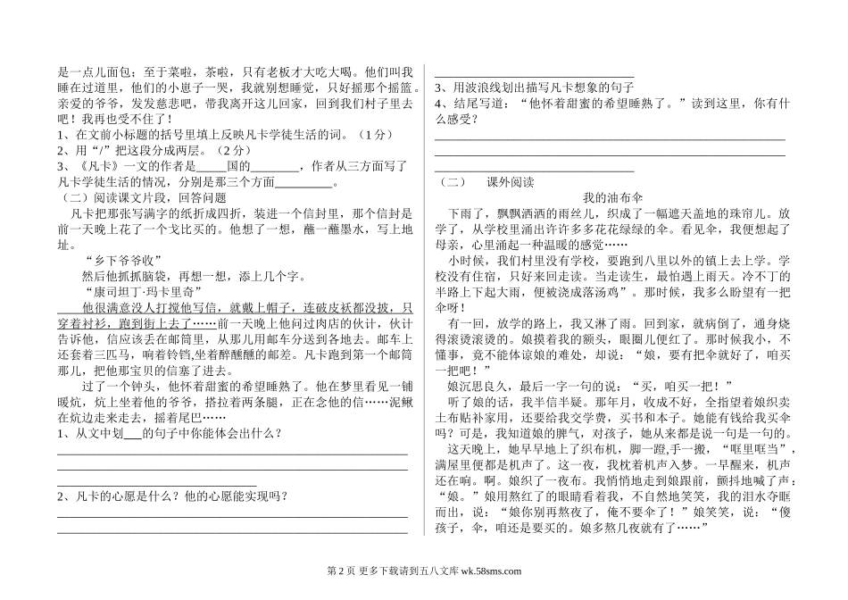 北师大版五年级语文下册第六单元测试题.doc_第2页