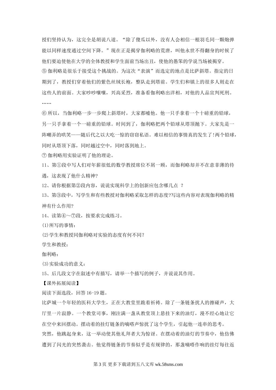 七年级语文第16课《伽利略不轻信权威》同步练习(北京课改版七上).doc_第3页