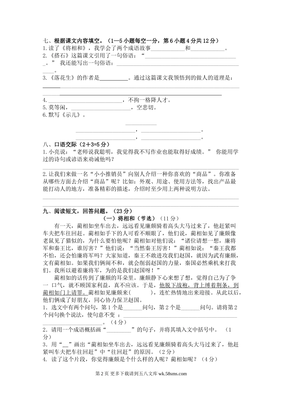 部编版五年级语文上册期中测试卷3.doc_第2页