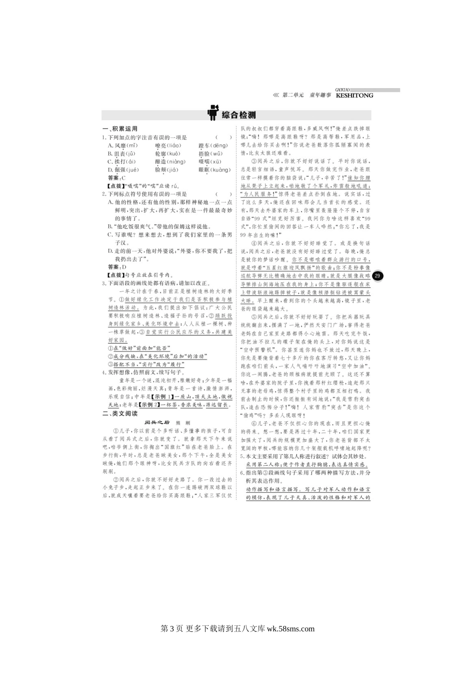 七年级语文第九课我们家的男子汉课时练习题+综合检测题有答案.doc_第3页
