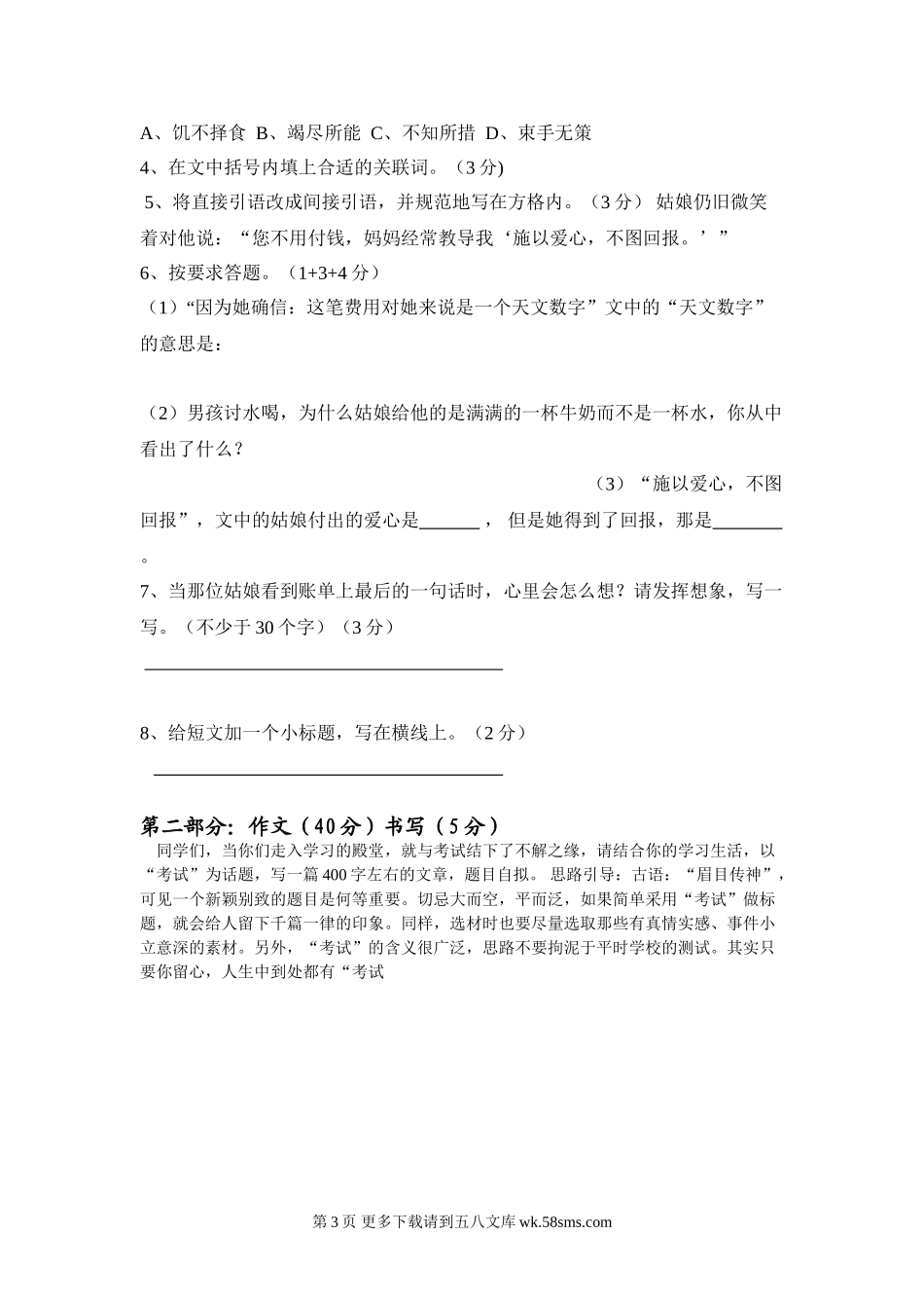 第一部分:现代文阅读(55分)(一)春笋(24分)我爱竹山,我爱竹林,我更爱竹山的春色,竹林的后代——春笋。春雨潇潇,绿幽幽的竹山,翠生生的竹林,像一幅yānwùmíméng的水墨画。雨雾纷纷洒在竹叶上,“沙...