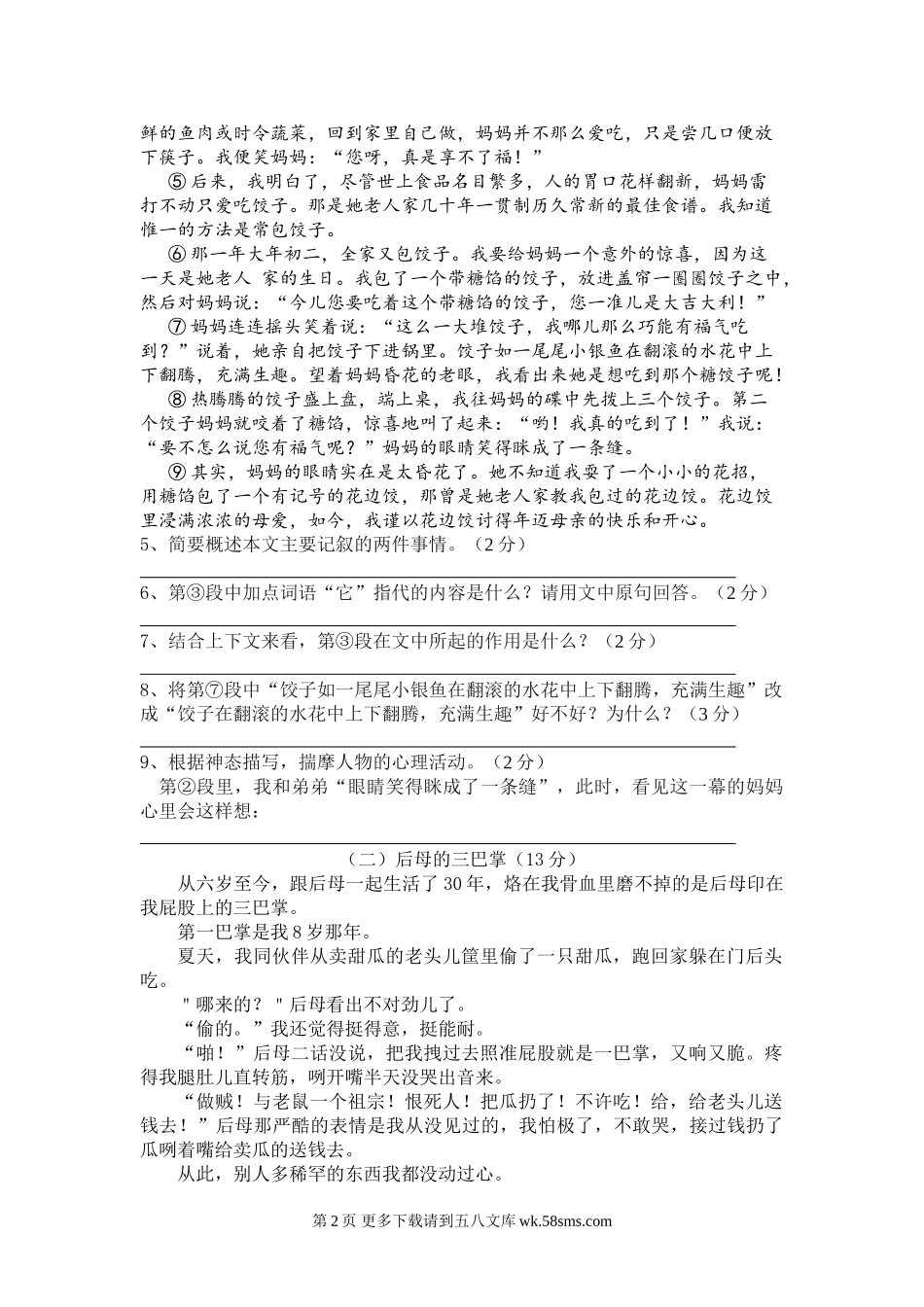 2013年第一学期七年级语文期中卷一、语文知识积累与运用(20分)1、根据拼音写出汉字或拼音或填空(4分)jué()别mù()浴脸()jiá徘()huái()之以恒烘()托()然大悟()廓2、文学常识填空(10分)(1...
