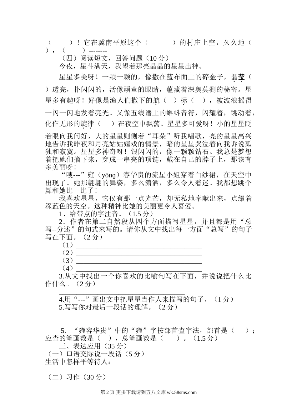 教科版六年级语文上册期末试卷及答案.doc_第2页