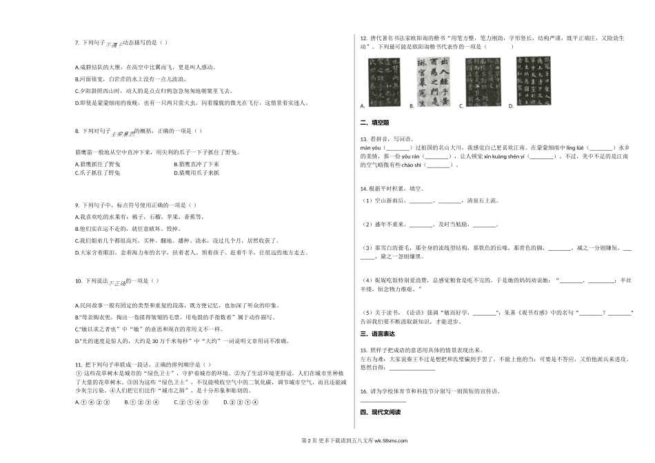 莆田市2020-2021学年第一学期五年级语文期末模拟试卷.doc_第2页