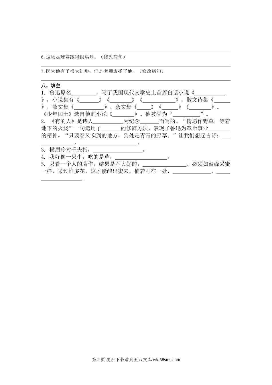 六年级上册第五单元基础知识复习题.doc_第2页