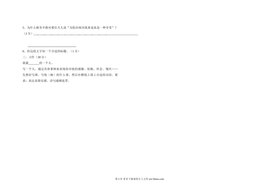 五年级下册语文检测试卷1、看拼音写词语。(10分)lǐmàoyòuzhìwǔrǔɡuījushēnyín()()()()()chuānsuōjǐlianɡchuáncānɡjùjuéyǔnnuò()()()()()2、比一比,再组成词语(6分)辩()掏()援()...