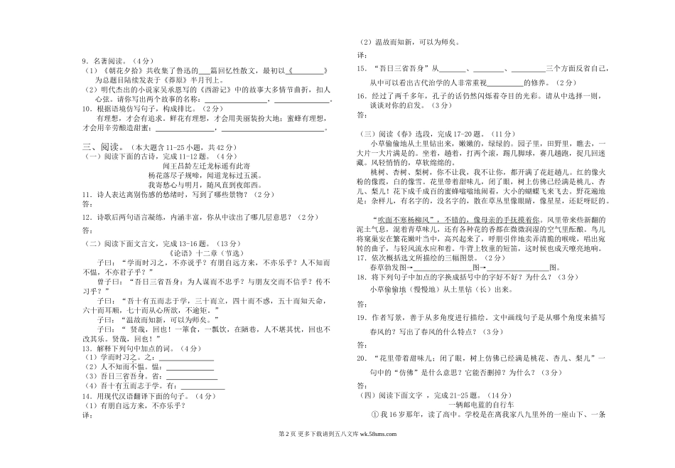 秋季七年级语文期中试题及答案.doc_第2页