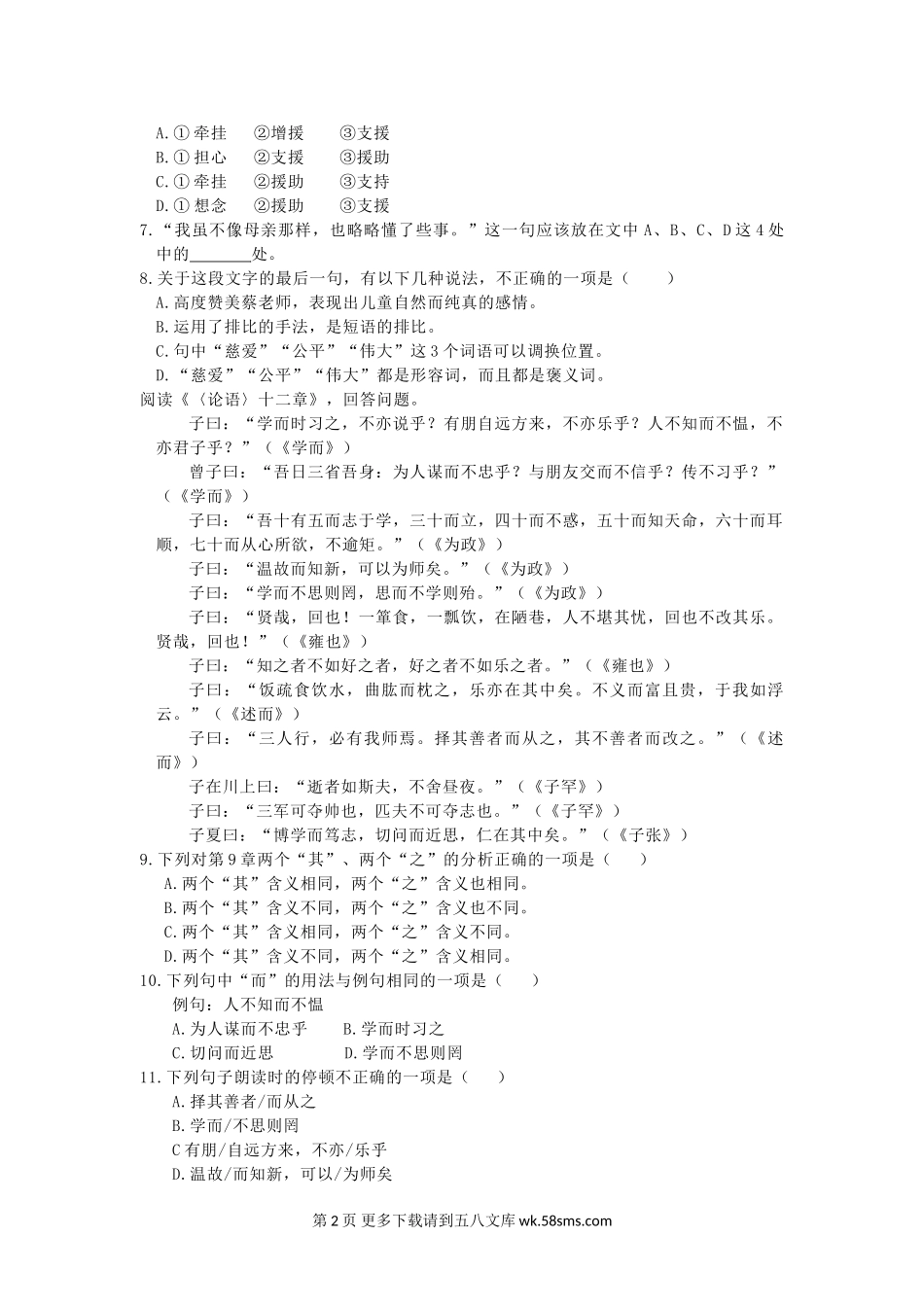 全解七年级语文上期中测试卷及答案解析.doc_第2页