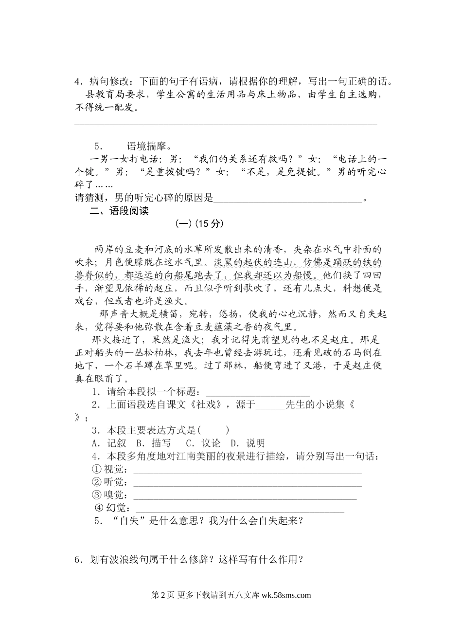 707班下学期期末语文综合练习试卷姓名:_________学号:_____一、语文基础知识的积累与运用:(一)请仔细阅读下面这段话,然后按要求答题:(10分)Kuài()炙人口的唐代颜体书法,是我国民族文化的guī()宝,颜体书...