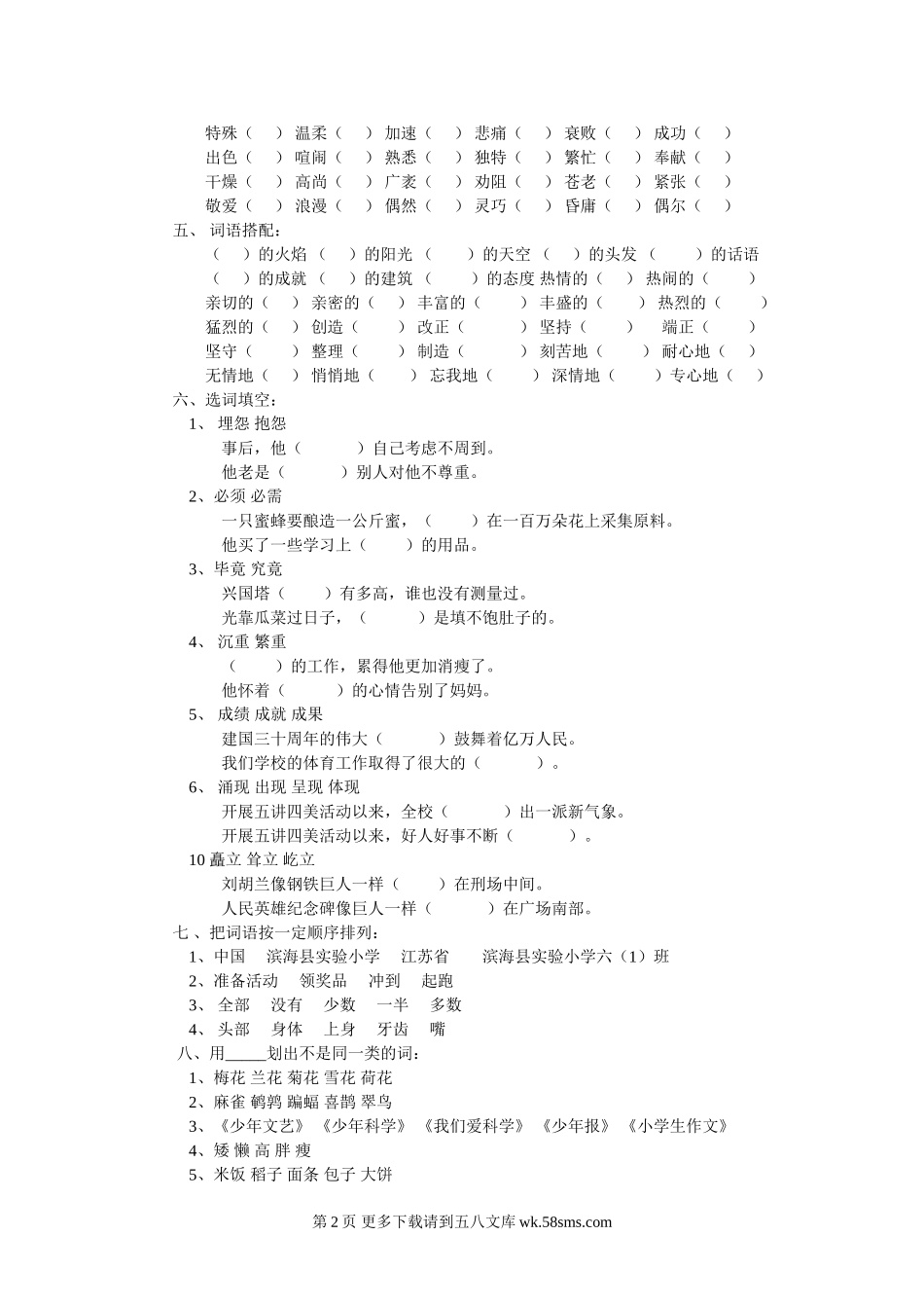 六年级语文复习归类资料19作者:不详来源:转载一、把下列成语补充完整。()汤蹈火冲锋()阵视死如()()不顾身()()业业勤勤()()先人后()()己为人出类拔()()尔不群永()不朽万古()存()...