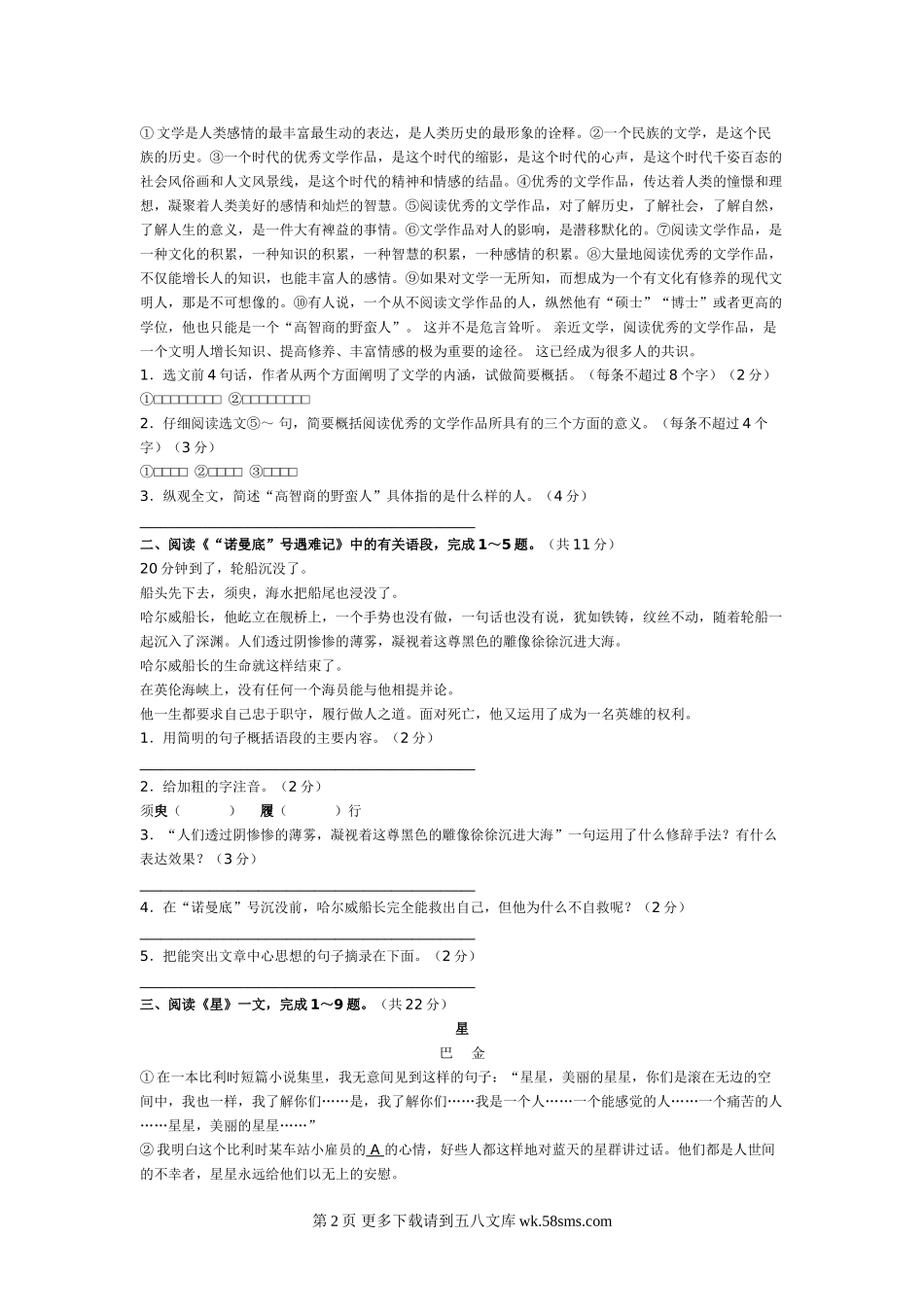 苏教版初一语文上册第一单元练习题有答案.doc_第2页