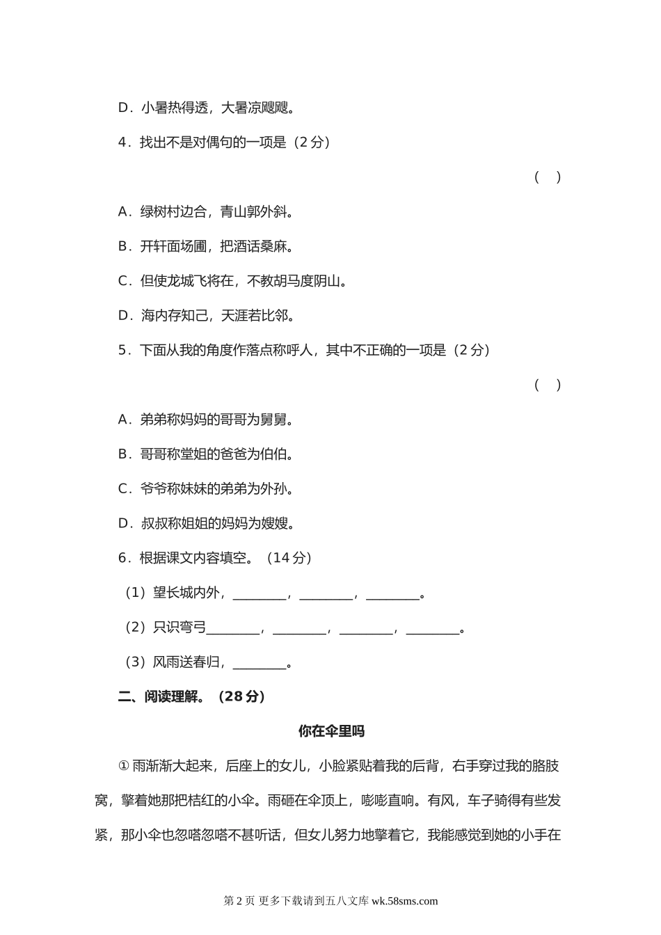 苏教版七年级语文下册第六单元练习题及答案AB卷.doc_第2页