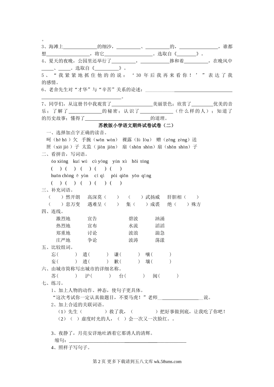 苏教版小学五年级语文期终试卷试卷.doc_第2页