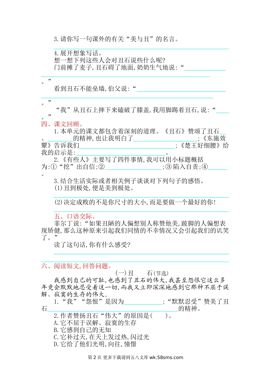 六年级语文上册第二单元提升练习题及答案【北师大版】.doc_第2页