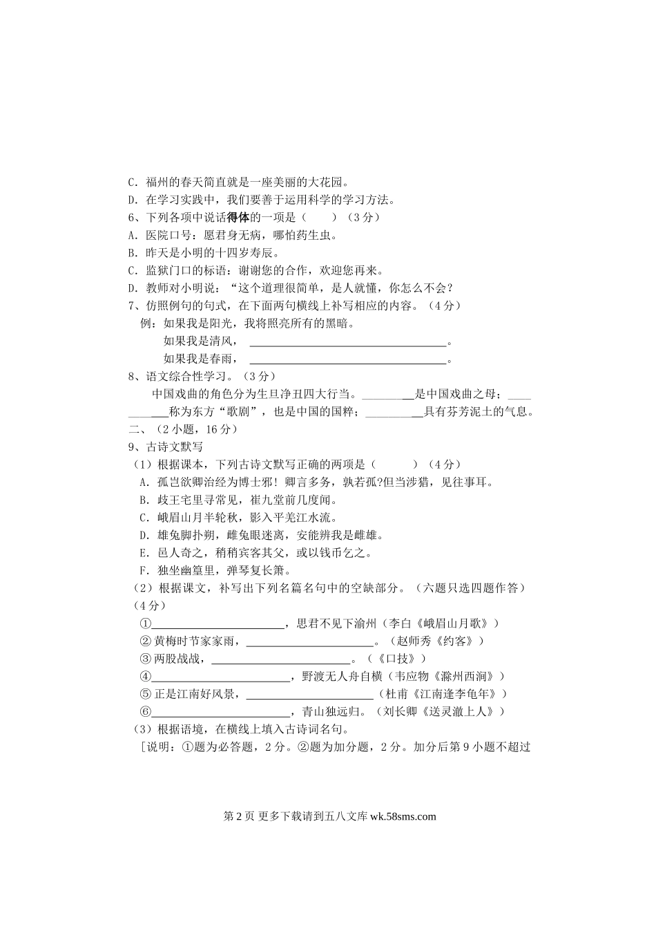 夏津县第二学期七年级期末语文试题及答案.doc_第2页