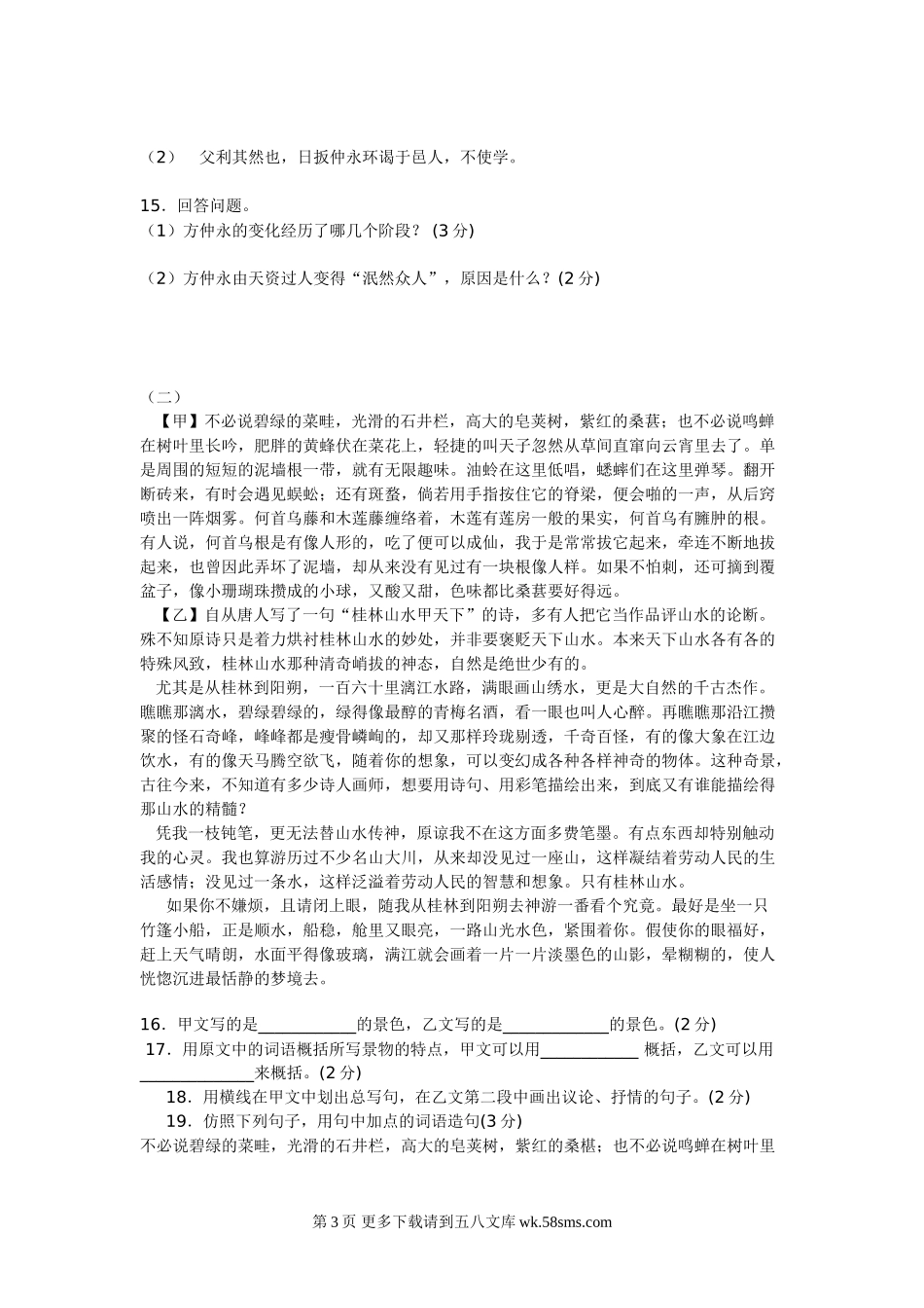 新课标七年级下册语文第一单元测试题.doc_第3页