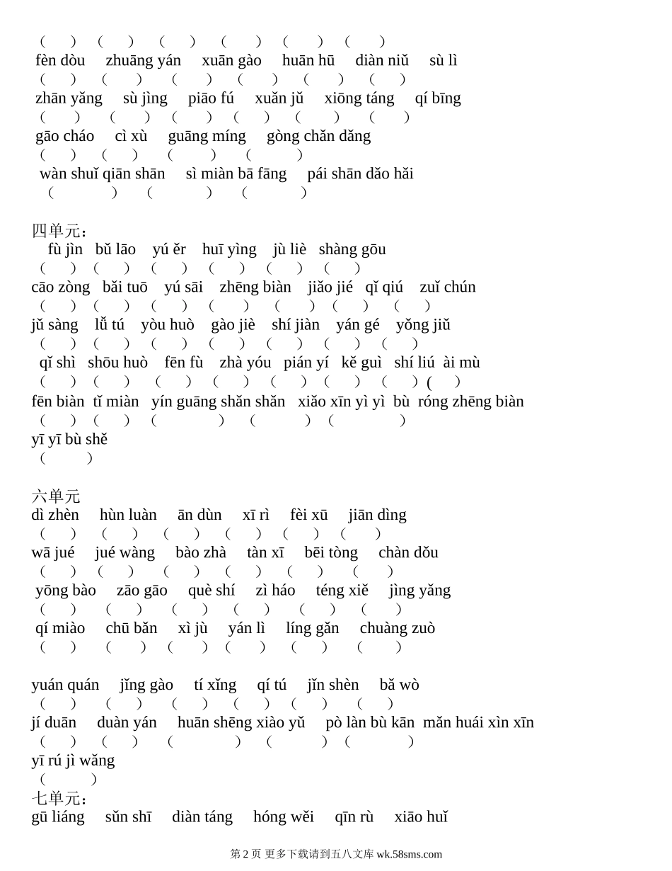 五年级上册看拼音写词语一单元:zhāopáidānyōujíqièjùpàhuánjìngzhīqù()()()()()()guānggùkǒngpàchōngzúlǐyóuwūyánqíshí()()()()()()zhīchēnggǔlìhuánrào...