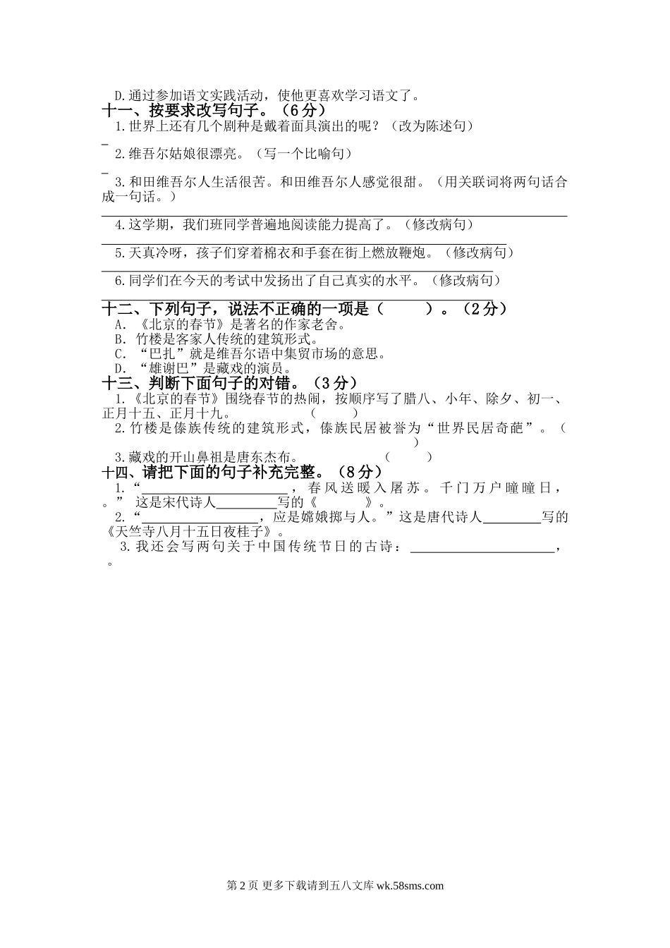 六年级语文下册第二单元基础知识自查卷.doc_第2页