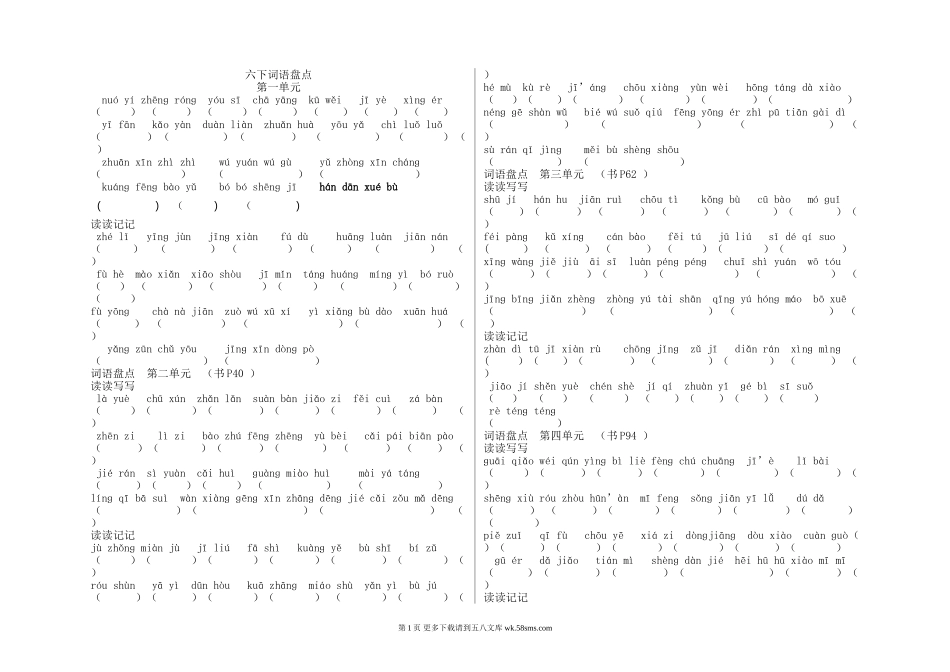 六下词语盘点第一单元nuóyízhēnɡrónɡyóusīchāyānɡkūwěijīyèxìnɡér()()()()()()()yīfānkǎoyànduànliànzhuǎnhuàyōuyǎchìluǒluǒ()()()()()()zhuānxīnzh...