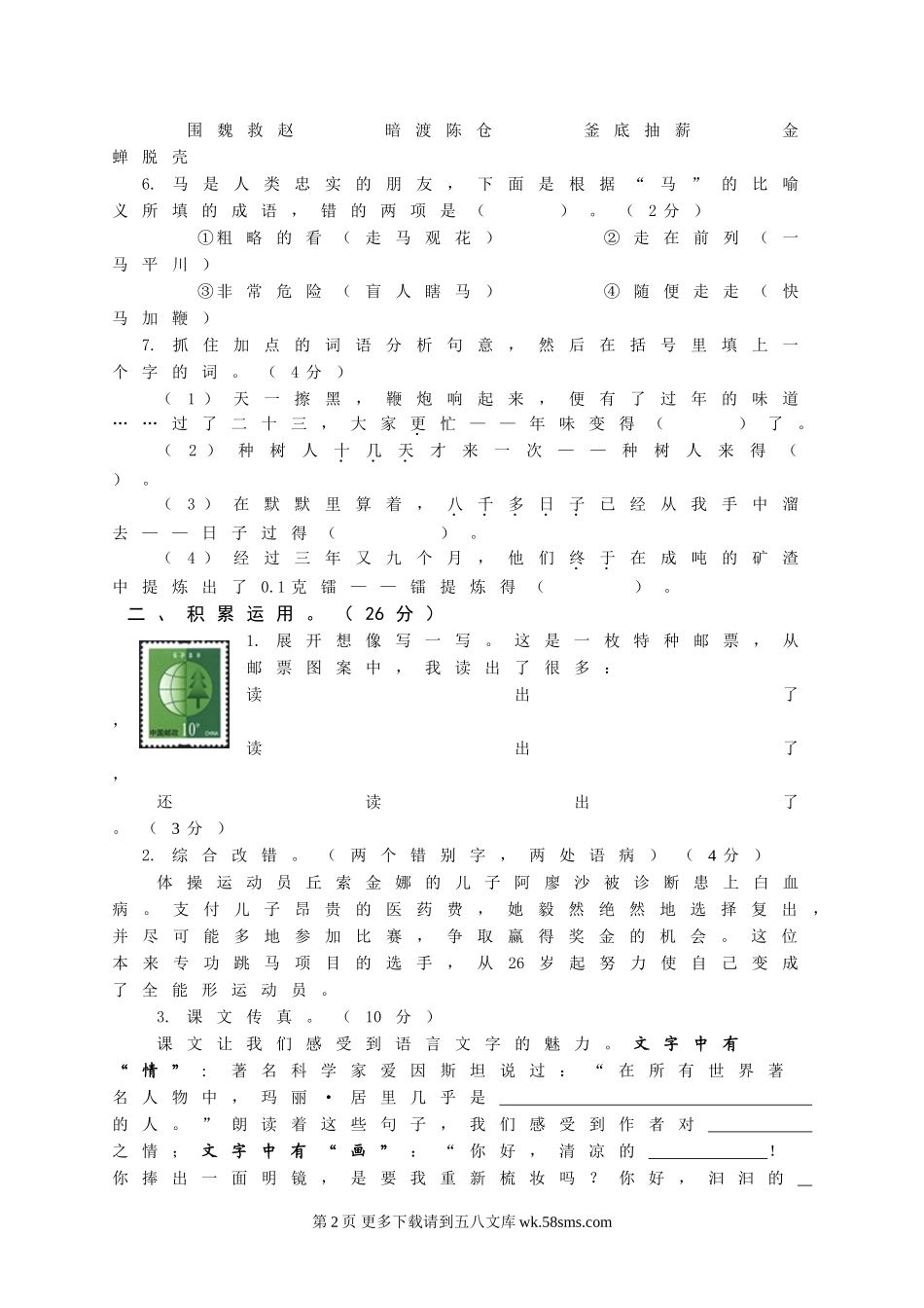 人教版六年级下册语文期末测试卷及答案.doc_第2页