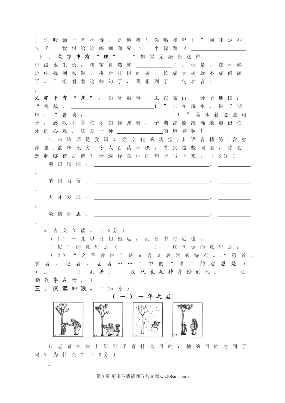 人教版六年级下册语文期末测试卷及答案.doc_第3页