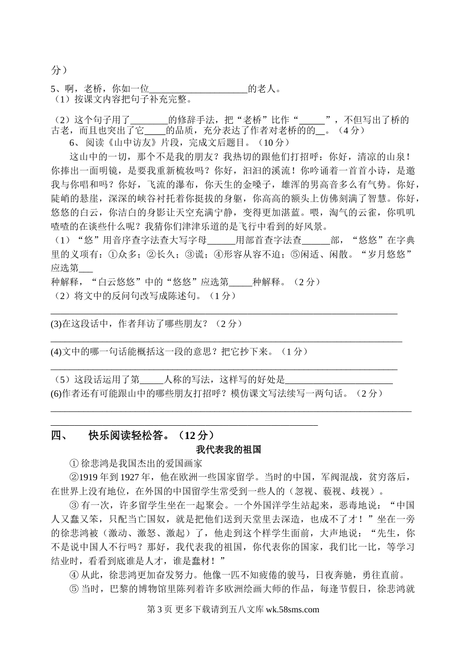 人教版六年级语文第一次月考测试题及答案.doc_第3页