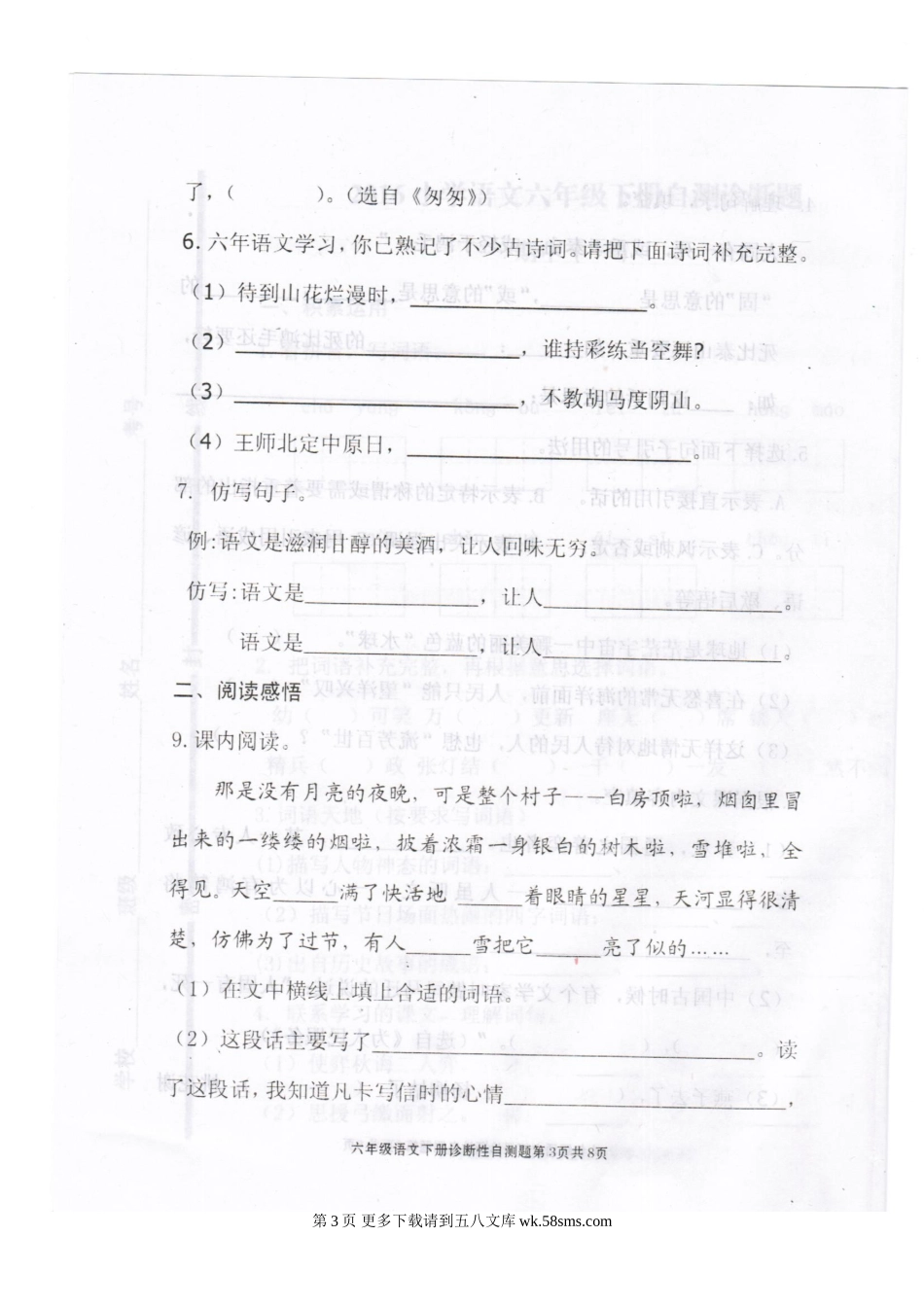 人教版小学六年级语文下册期中试题一.doc_第3页