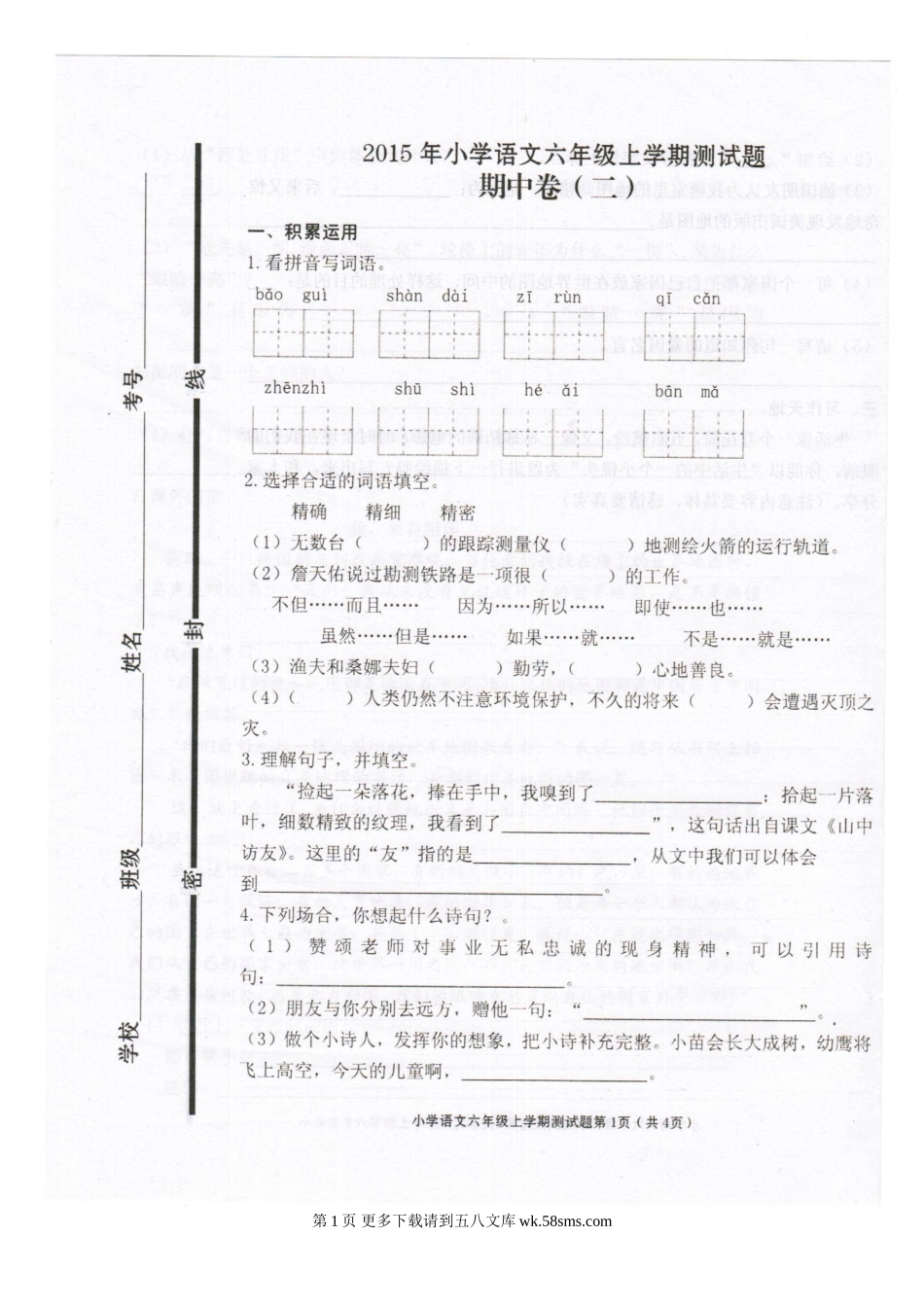 人教版小学语文六年级上册期中试题二.doc_第3页