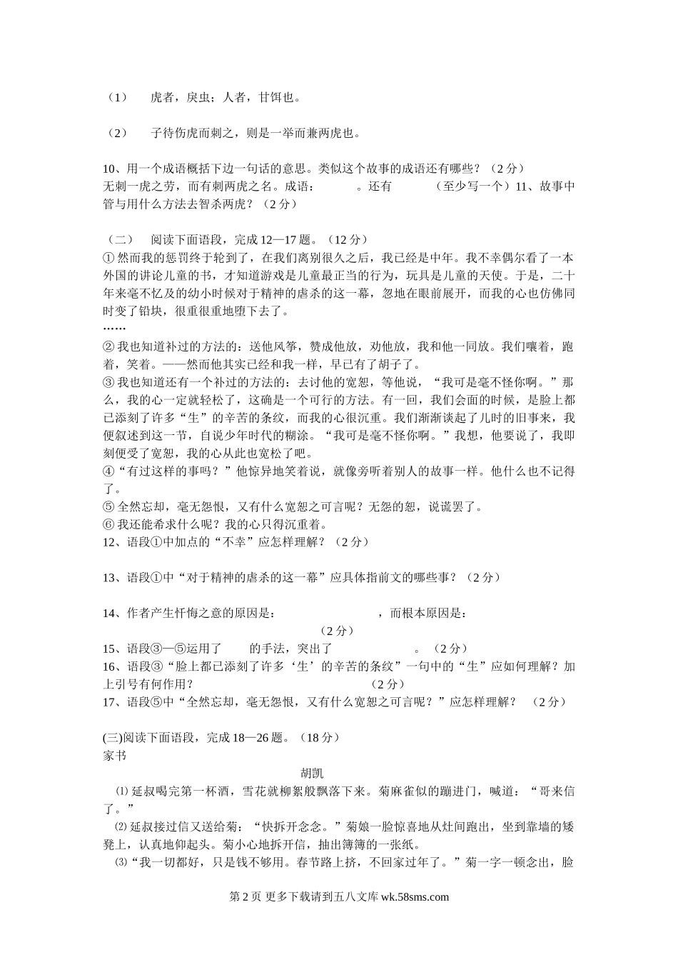 语文:七年级上册语文第五单元综合能力训练普及卷(人教新课标七年级上册).doc_第2页