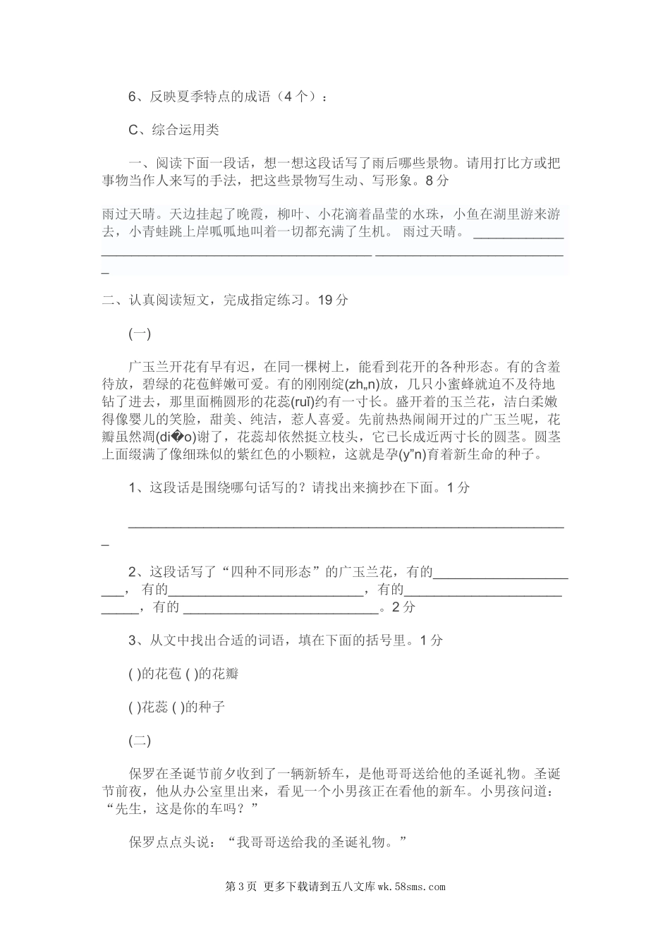 苏教版小学语文毕业考试试题及答案.doc_第3页