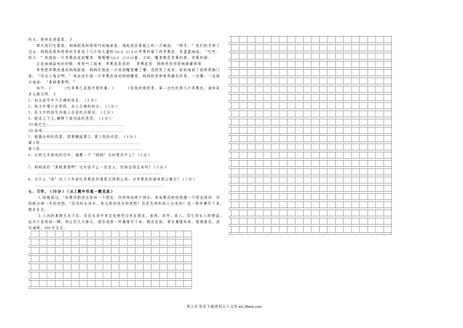 小学毕业考试语文模拟试卷(二).doc_第2页