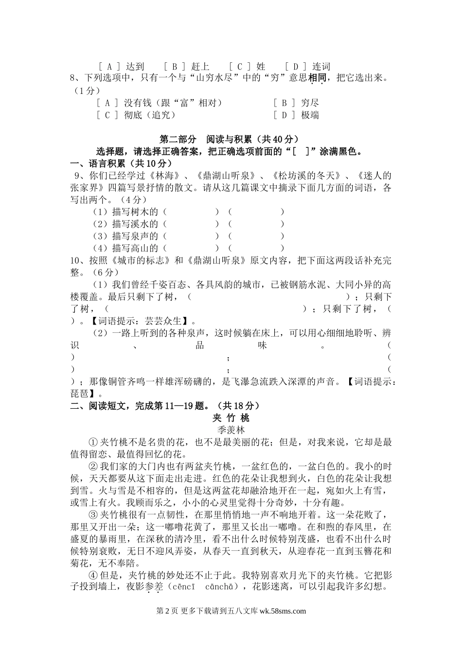 小学毕业考试语文模拟试卷五.doc_第2页