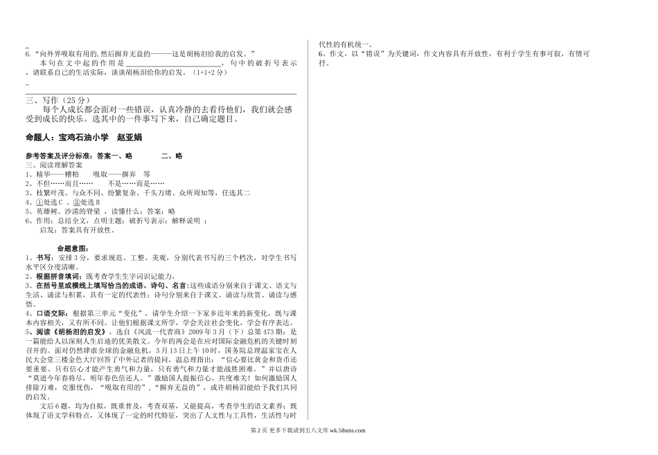 五年级语文上册期末试题及答案.doc_第2页