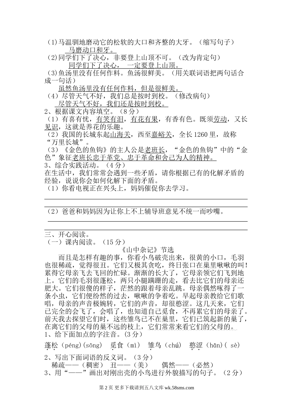 小学六年级语文上册期末试卷及答案.doc_第2页