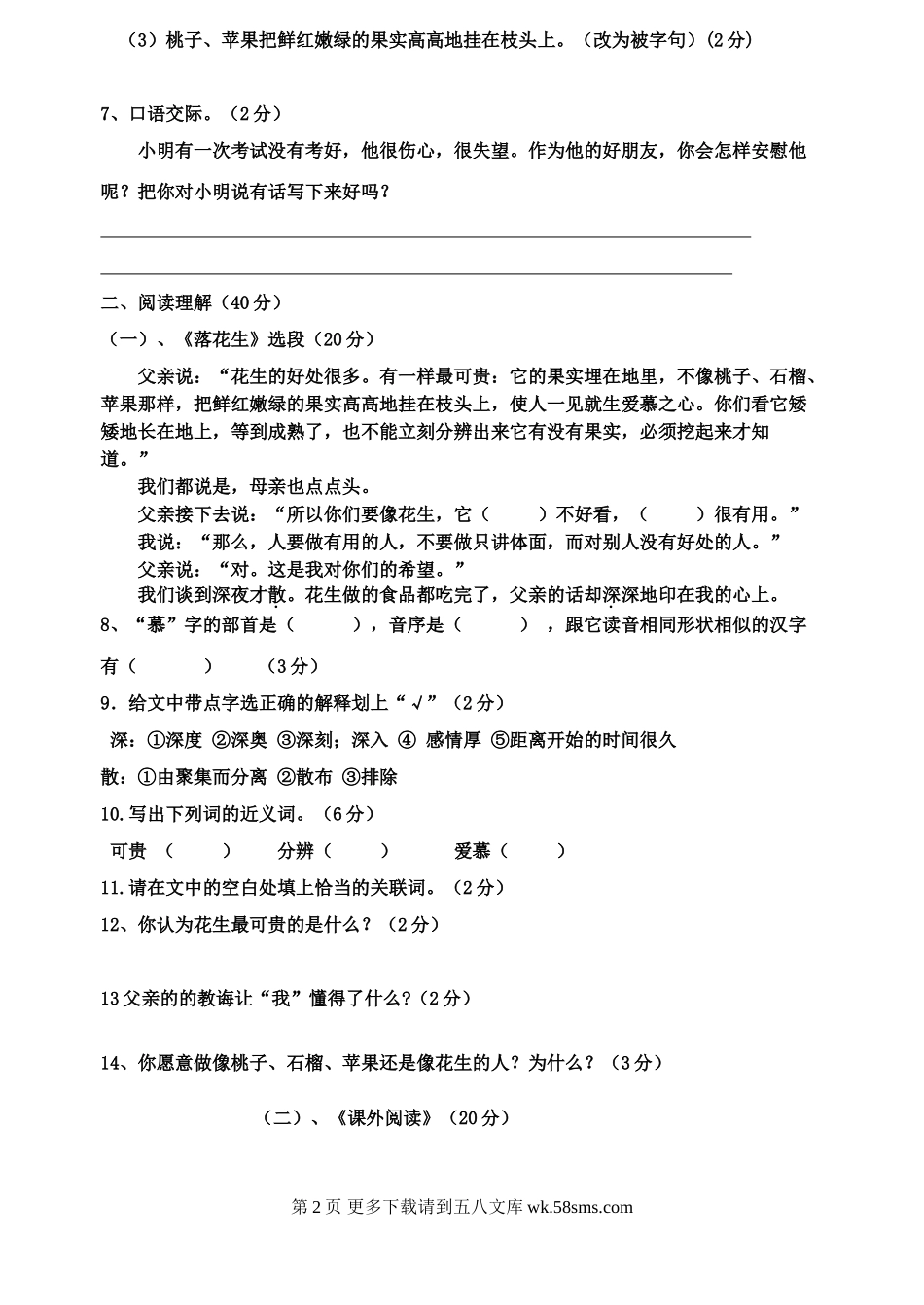 2014-2015第一学期小学五年级语文期中测试班别姓名成绩___________一、基础积累(30分)1、我会看拼音,写词语。(4分)yōufāngfēnfùshíjiànjiǎojié()()()()2、我会组词。(4分)祥()毫()划huá()强qi...