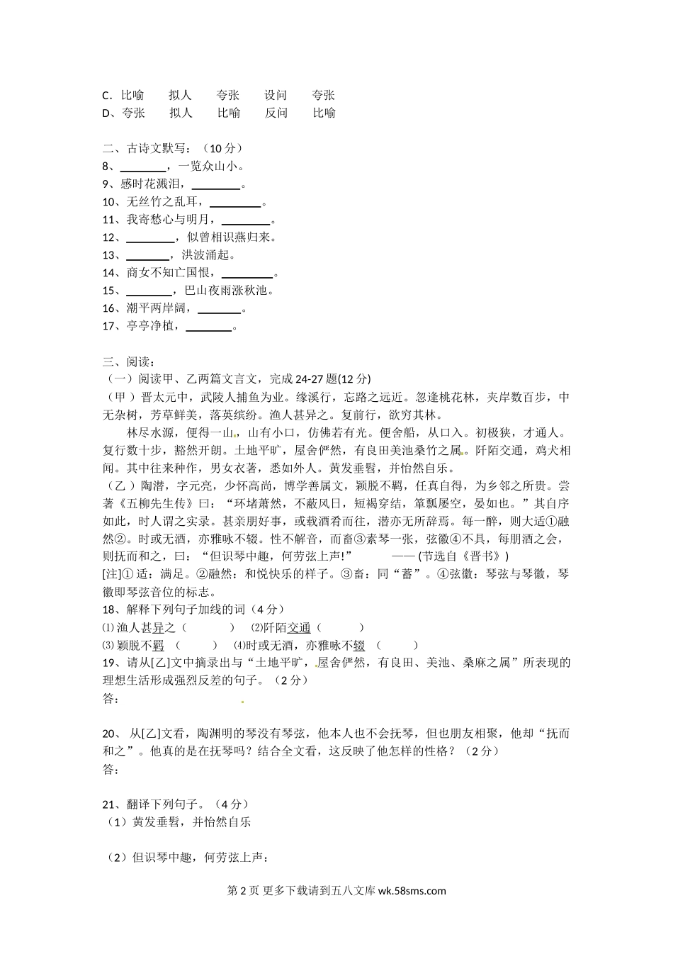 丹东七中八年级上学期期中语文期中试卷及答案.doc_第2页