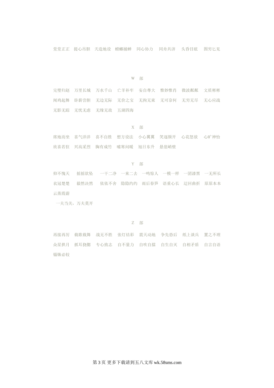 A部安居乐业安身之处B部杯水车薪变化多端变化莫测变化无穷表里如一别具一格彬彬有礼屏息凝视秉烛夜游波澜壮阔波涛汹涌波浪滔天不假思索不计其数不可一世不由自主不自量力C部灿烂辉煌苍翠欲滴草长莺飞层峦叠嶂...