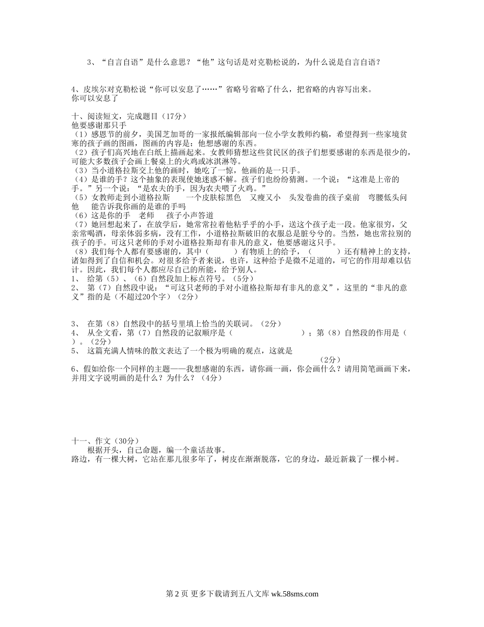 一、读拼音,写词语(8分)chōngjǐngxūyúkuíwúzhú////lǒu()()()()yùnwèishūcàihéxūliàowàng()()()()二、选择正确的读音(在正确的读音上打√)(3分)秦国(qínqíng)擎着(qínqíng)雕塑(s...