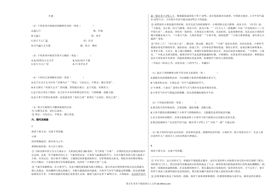 湖南永州市2019-2020学年八年级语文上册期末试卷.doc_第3页