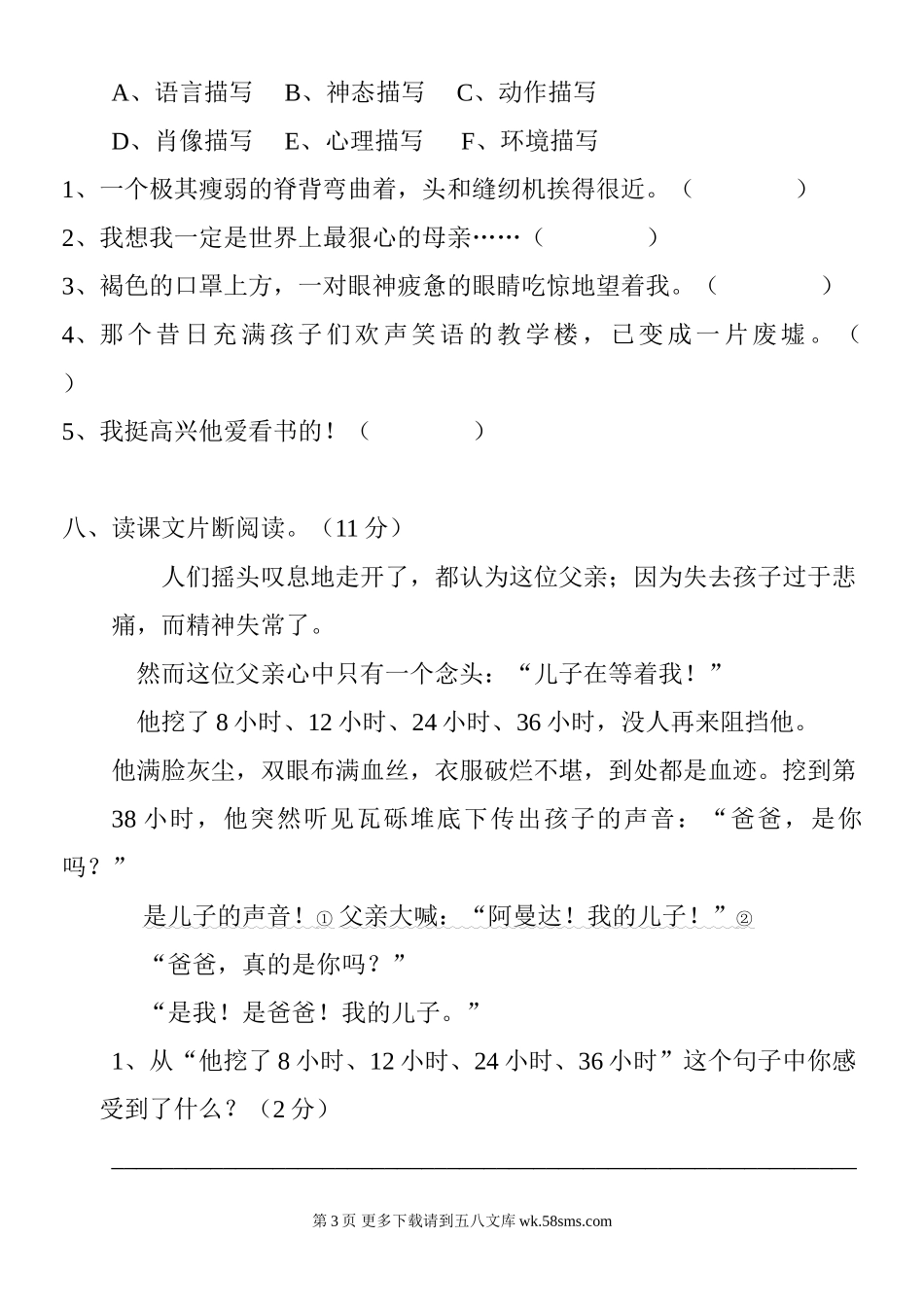 小学五年级语文上册第六单元测试题.doc_第3页