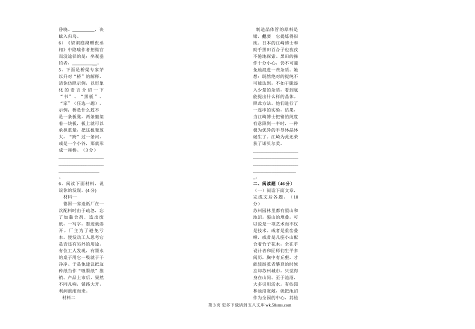 八年级语文第一学期第三次月考试卷.doc_第3页