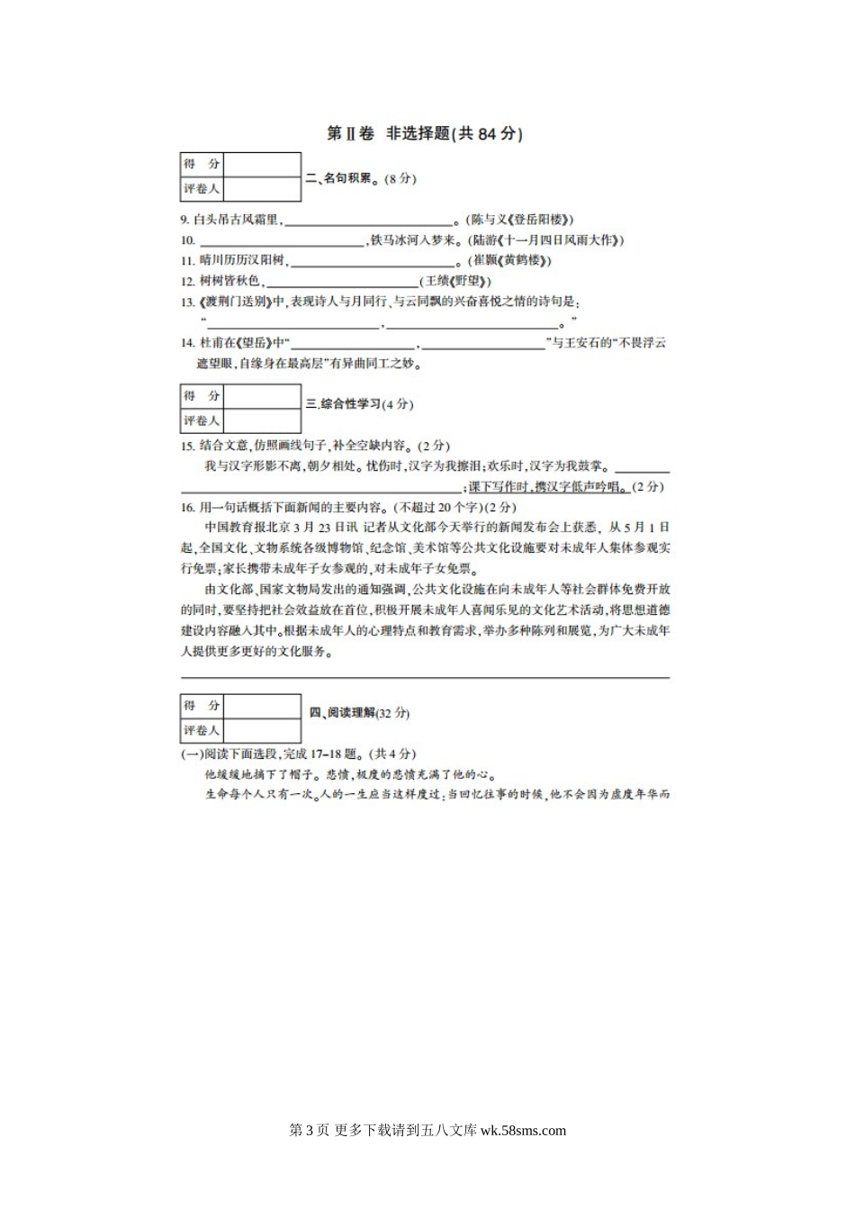 凉山州八年级上期语文期末试题及答案.doc_第3页