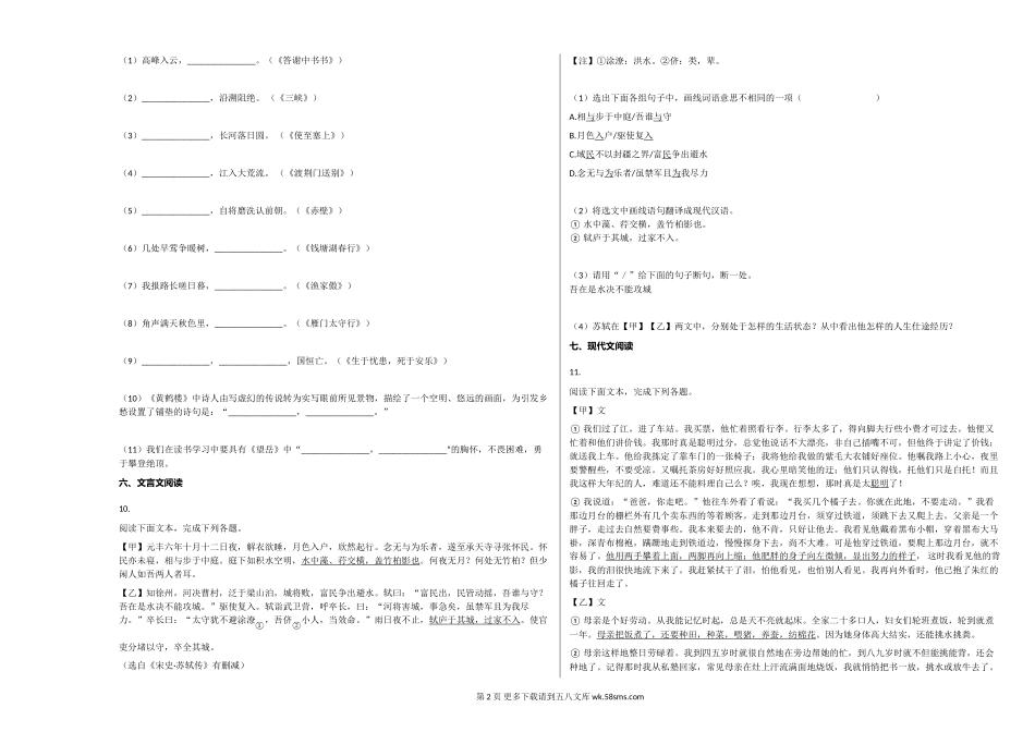 辽宁抚顺市2020-2021学年第一学期八年级语文期末试卷.doc_第2页