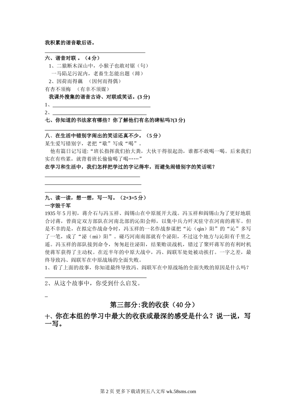 新课标人教版五年级语文上册第五单元测验题.doc_第2页