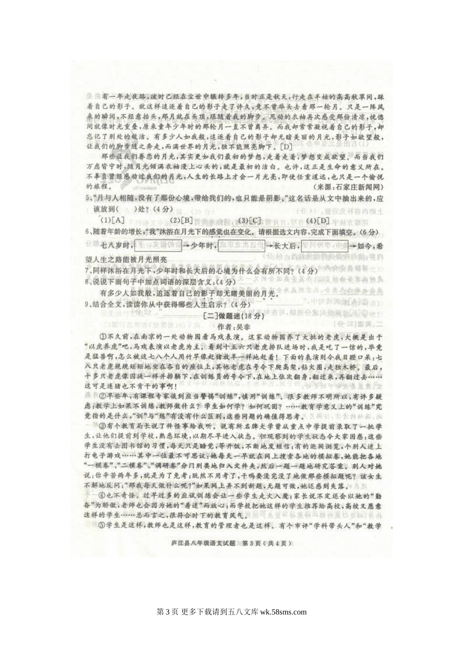 庐江县2015-2016学年第二学期八年级语文期末试题及答案.doc_第3页