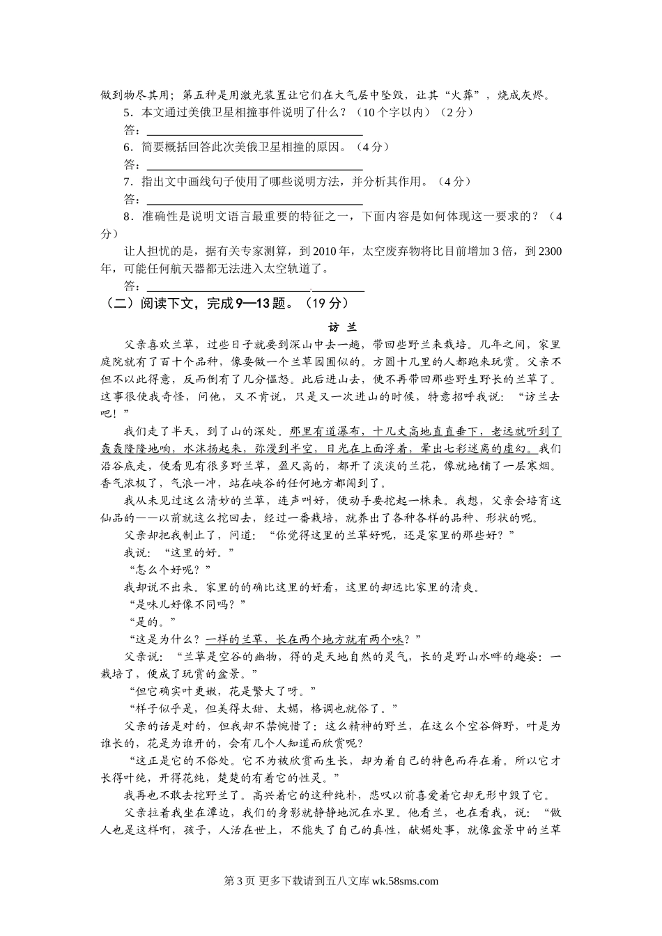 启明外国语学校2012—2013年第一学期八年级语文期中试题及答案.doc_第3页