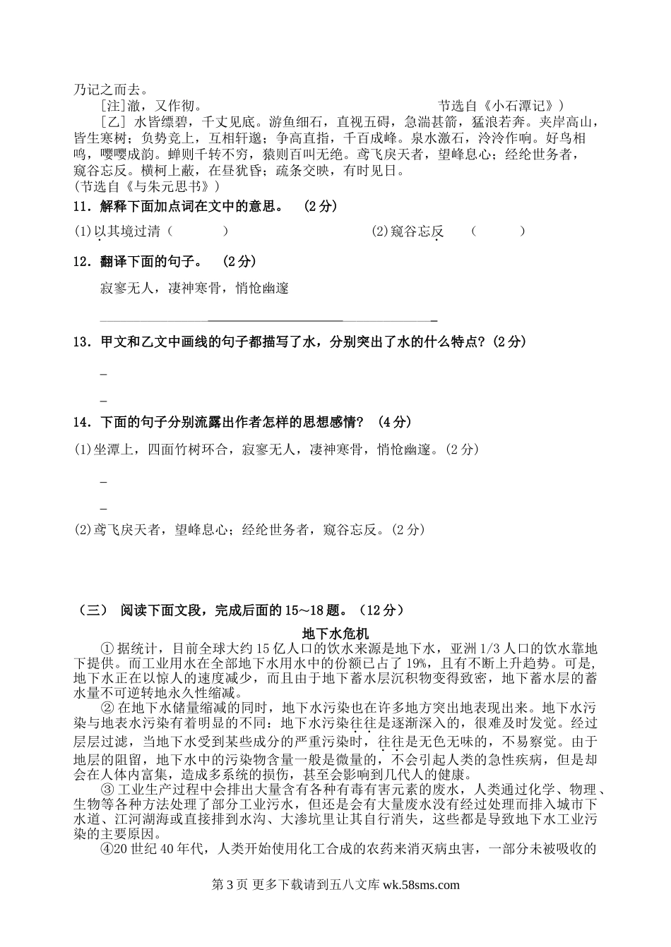 邛崃市下八年级语文期末适应性练习题.doc_第3页